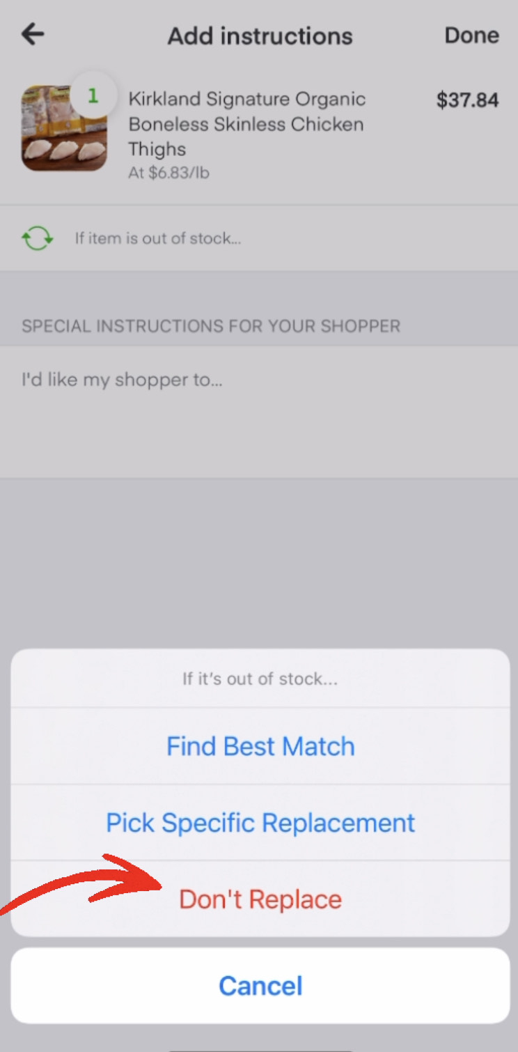 Again, not every shopper does this since they trust Instacart with the suggestions and don't want to risk lowering their tip so you might end up with something you don’t want.